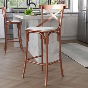 banqueta katrina revestimento sintético branca e cobre - Marrom