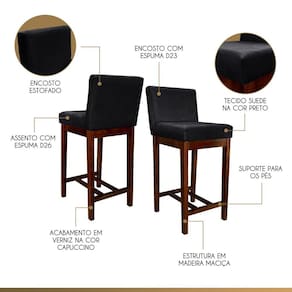 A Banqueta Média Lisboa é uma peça de destaque para qualquer ambiente, produzida em Madeira Maciça com acabamento em Verniz Capuccino, garantindo durabilidade e elegância. Seu assento e encosto preenchidos com Espuma D26 e D23, respectivamente, oferecem o máximo conforto para refeições e momentos de descontração. Além disso, o revestimento em Tecido Suede na cor Preto confere um toque moderno e versátil. Seja na cozinha, sala de jantar ou espaço gourmet, essa banqueta é a escolha perfeita para agregar charme e funcionalidade ao lar!