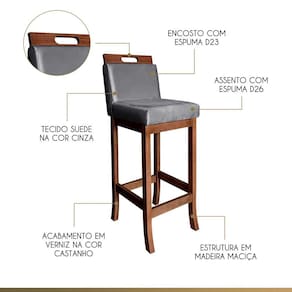 A Banqueta Média Estofada Milão é um móvel versátil que vai deixar seu ambiente cheio de estilo. Possui um design atual com cores sobreas que pode ser aplicada em diversas composições e decorações. Por causa da sua versatilidade consegue ser utilizada em diferentes ambientes como bancadas altas, espaços gourmet, salão de festas, bares, cantinho do churrasco ou onde você precisar. Seu assento é preenchido com espuma D26, o encosto com espuma D23 e o revestimento é com tecido suede que proporciona conforto e elegância. A Banqueta Milão é produzida com materiais de excelente qualidade, garantindo sua durabilidade e vida útil. Móveis sofisticados e com alta qualidade, só na CCS Interiores.