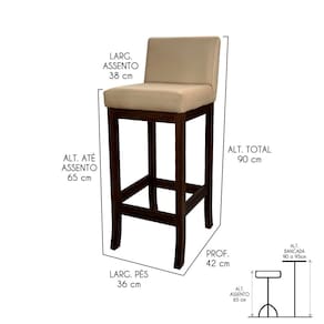 INFORMAÇÕES TÉCNICAS: Altura Total: 90 Cm Altura até Assento: 65 Cm Altura até Travessa: 13 Cm Altura Encosto: 35 Cm Largura Assento: 38 Cm Largura Estrutura: 36 Cm Profundidade Total: 42 Cm Profundidade Assento: 41 Cm Peso: 7 kg
