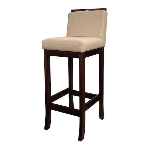 CARACTERÍTICAS TÉCNICAS: - Produzido em Madeira Maciça de Reflorestamento - Acabamento em Verniz na cor Capuccino - Assento Preenchido com Espuma D26 - Encosto Preenchido com Espuma D23 - Revestimento em Suede na cor Bege *Indicada para Bancadas/Mesas com Alt. 90/95cm *PRODUTO ENVIADO MONTADO.
