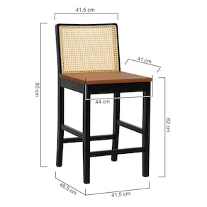 Banqueta Média Pérola Madeira Maciça com Telinha c/ 62cm Altura - Preto Assento Ripado Amêndoa -
