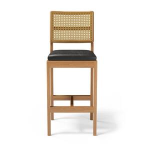 MadeiraBanqueta Milena Madeira Maciça Assento Estofado Encosto De Tela Palha Sextavada Courino Preto 503 - Banquetas Banquinhos Em Madeira Maciça Encostos De Tela Palha Sextavada