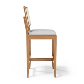 Banqueta Milena Madeira Maciça Assento Estofado Encosto De Tela Sintética Linho Cinza 407 - Banqueta Banquinho Em Madeira Maciça Encosto De Tela Sintética