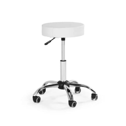 Banqueta Mocho Sem Encosto com Regulagem de Altura - Branca | Cromado