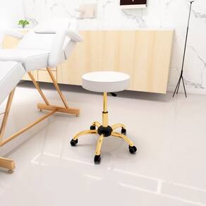 Banqueta Mocho Sem Encosto com Regulagem de Altura - Branca | Dourado Brilho.