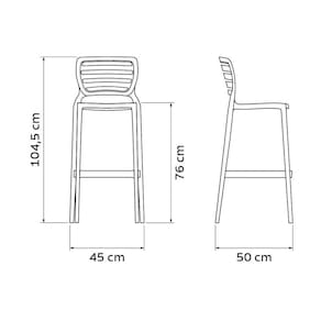 Banqueta Para Bar Alta Tramontina Sofia Preta Em Polipropileno Empilhável Banqueta Alta para Bar Tramontina Sofia Preta, fabricada em polipropileno de alta resistência e fibra de vidro injetado. Design moderno e empilhável, suportando até 8 peças, perfeita para otimizar espaços. Com capacidade para até 182 kg, suas dimensões são 45x50x104,5 cm, com altura de 76 cm até o assento. Ideal para bares e ambientes descontraídos. Linha ou Coleção - Sofia Modelo - 92137009 Tipo de produto - Banqueta Largura do Produto (cm) - 45 cm Comnto do Produto (cm) - 50 cm Altura do Produto (cm) - 104,5 cm Descrição do Tamanho - 45x50x104,5 cm Altura do chão até o assento - 76 cm Material - Polipropileno Material do Assento - Polipropileno Estrutura - Polipropileno Cor - Preto Cor do assento - Preto Estofada - Não Acabamento - Fosco Suporta até - 182 kg Empilhável - Sim, até 8 peças Necessita Montagem - Não Ambiente - Interno e Externo Tipo de Assento - Fixo Antiderrapante - Sim Mais Informações - Peso Máximo Recomendável: 182 kgFabricação: Polipropileno e Fibra de Vidro InjetadoEmpilhável até: 8 peças Recomendações de Uso - Transporte sempre com cuidado.Não subir no assento.Respeite o limite máximo de peso.Higienizar com sabão neutro e esponja macia, evitando produtos abrasivos no processo de limpeza.Para evitar manchas, após a lavagem, secar com pano seco e macio.Prolongue a vida útil do produto mantendo-o guardado quando não estiver em uso.Longas exposições ao sol podem provocar manchas ou perda da cor do produto.Retire o produto do ambiente sempre que for higienizar o piso; alguns materiais de limpeza podem causar danos em contato com a peça. Peso do Produto (Kg) - 4.15 kg Certificação - Inmetro, 007537/2018 Marca - Tramontina Garantia - 12 meses para vícios ou defeitos de fabricação Aviso sobre o produto - Todas as imagens são meramente ilustrativas EAN - 7908538120456 Largura Produto Com Embalagem (cm) - 44 cm Comnto Produto Com Embalagem (cm) - 48 cm Altura do Produto com Embalagem (cm) - 94 cm Peso Produto Com Embalagem (Kg) - 5 kg Material para Filtro - Polipropileno