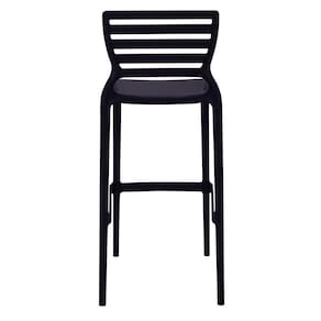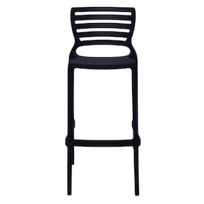 PolipropilenoBanqueta Alta para Bar Tramontina Sofia Preta, fabricada em polipropileno de alta resistência e fibra de vidro injetado. Design moderno e empilhável, suportando até 8 peças, perfeita para otimizar espaços. Com capacidade para até 182 kg, suas dimensões são 45x50x104,5 cm, com altura de 76 cm até o assento. Ideal para bares e ambientes descontraídos.