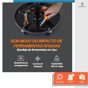 A Banqueta para Mecânico com Assento Giratório da Starfer, uma solução de qualidade superior para profissionais que valorizam conforto e eficiência em suas atividades. Com uma bandeja de aço integrada para ferramentas, base de quatro rodízios giratórios de 2,5 para mobilidade suave, e uma capacidade de até 136kg, essa banqueta oferece durabilidade e praticidade excepcionais. Seu assento laranja é acolchoado para conforto prolongado, enquanto a alavanca de ajuste de altura e as alturas máxima 54,5cm e mínima 42,5cm proporcionam personalização. Com um assento de 28cm de diâmetro, esta banqueta é uma escolha notável para melhorar a produtividade e o bem-estar durante tarefas mecânicas e de manutenção.