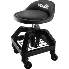 Possui estrutura reforçada, assento giratório acolchoado com encosto e alavanca para regulagem de altura, rodízios giratórios independentes e cilindro pneumático. Conta ainda com compartimento para armazenar ferramentas (335 mm x 335 mm).
