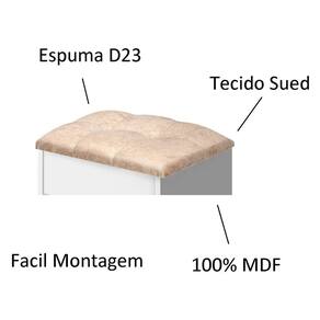 BANQUETA CAMARIM PLUS A Banqueta CAMARIM PLUS é o item que falta para a sua penteadeira. Versátil, ela serve também para colocar em qualquer lugar do quarto, utilizando para sentar ou até mesmo para apoiar e descansar os pés. Conforto e estilo para seu ambiente, com um design moderno.DESCRIÇÃO DO PRODUTOProduzido em 100% MDF de ótima qualidade. Acabamento interno e externo.Suporta até 95 kgEstofado com tecido SuedEspuma D26DIMENSÕES BANQUETA CAMARIM PLUS Altura: 42 cmLargura: 380 cmProfundidade: 24 cmMontagem por conta do comprador, a loja não oferece serviço de montagem. Todos os nosso moveis possuem manual de montagem.