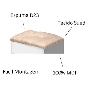 BANQUETA CAMARIM PLUS A Banqueta CAMARIM PLUS é o item que falta para a sua penteadeira. Versátil, ela serve também para colocar em qualquer lugar do quarto, utilizando para sentar ou até mesmo para apoiar e descansar os pés. Conforto e estilo para seu ambiente, com um design moderno.DESCRIÇÃO DO PRODUTOProduzido em 100% MDF de ótima qualidade. Acabamento interno e externo.Suporta até 95 kgEstofado com tecido SuedEspuma D26DIMENSÕES BANQUETA CAMARIM PLUS Altura: 42 cmLargura: 380 cmProfundidade: 24 cmMontagem por conta do comprador, a loja não oferece serviço de montagem. Todos os nosso moveis possuem manual de montagem. "Se possuir dúvida, deixe uma pergunta antes de finalizar a compra"