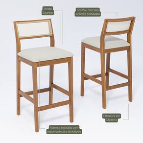 A Banqueta Bella é a escolha ideal para quem busca sofisticação e funcionalidade em ambientes como cozinhas gourmet, bancadas e espaços de convivência. Com estrutura inteiramente em madeira, ela combina resistência, durabilidade e um visual atemporal que valoriza a decoração. Seu assento estofado conta com espuma de alta densidade, garantindo conforto mesmo durante longos períodos de uso. O encosto, com tela sintética sextavada de acabamento refinado, proporciona leveza visual e um toque contemporâneo ao design. Com altura de 72 cm do chão até o assento, a Banqueta Bella é perfeita para bancadas altas, oferecendo ergonomia e estilo em cada detalhe. Acabamento da Estrutura: Verniz Almofada do assento: Fixa Altura do assento até o chão: 72 cm Altura Regulável: Não Ambiente Principal: Sala de Jantar codigo_ean: 7900288171894 Cor: Madeira/Cru Cor do Produto: Madeira/Cru Dobrável: Não Enchimento do Assento: Espuma D-22 Escala de Brilho: Semi-Brilho Itens Inclusos: 1 Banqueta Linha ou Coleção: Bella Natuame Manual de Montagem e Instalação: https://product-hub-prd.madeiramadeira.com.br/459953999/documents/7f418e3f-e3f3-4daa-90d7-887f32c3ffe62990117503517495782254714.pdf Marca: Cimol Material do Assento: Almofada com Espuma Necessita Montagem: Não Origem do Produto: Nacional Peso: 8,5 kg Possui Almofada no Assento: Sim Possui Encosto: Não Possui Rodízio: Não Recomendações de Uso, Manutenção e Limpeza: Para manter seu móvel novo por muito mais tempo, evite locais úmidos, mantenha-o distante de líquidos. Para limpá-lo com segurança utilize uma flanela seca sem produtos abrasivos Revestimento do Assento: Tecido Courino Tipo de Assento: Fixo Tipo de Madeira Maciça: Tauari