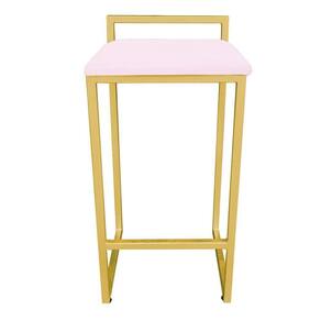 Banqueta Pietra Suede Rosa Bebê Base Dourado Drossi