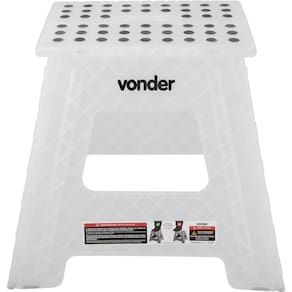 Produto: Banqueta Plástica Dobrável | Cor: Branco | Altura Máxima: 36 cm | Largura: 34 cm | Marca: Vonder | Modelo: 3540036000 | Profundidade: 41 cm | Quantidade de caixas de embalagem: 1 | Requer Montagem: Não | Altura da Banqueta: Baixa até 45 cm | Ambiente Indicado: Interno | Coleção Jardim: Não | Material da Estrutura: Polipropopileno | Peso do Produto: 1,66 | Tonalidade: Transparente
