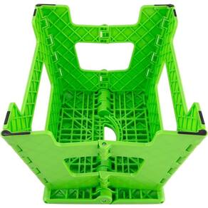 Antiderrapante, dobrável e com alça para transporte (fechada).