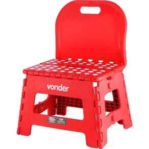 Banqueta plástica dobrável vermelha altura 220 mm com encosto VONDER