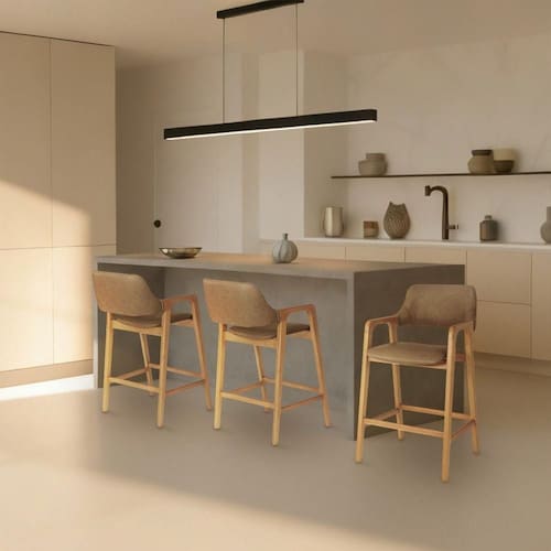 Sua estrutura premium garante robustez e durabilidade, enquanto o assento estofado em corino oferece conforto, charme e facilidade na limpeza. Uma banqueta versátil, ideal para compor cozinhas, varandas gourmets, áreas de lazer ou até ambientes comerciais.