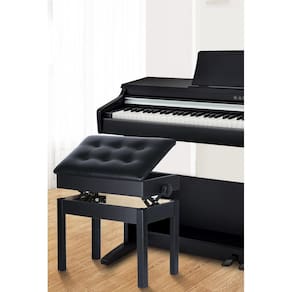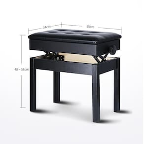 - Altura do banco de piano é 100% ajustável, de modo que cada membro da sua família pode usá-lo facilmente. Tudo o que você precisa fazer é girar os botões simples e ajustar a altura de 48 cm para 58 cm. Além disso, o produto conta com um espaço de armazenamento conveniente e escondido, sob o assento, que pode guardar suas partituras ou livros