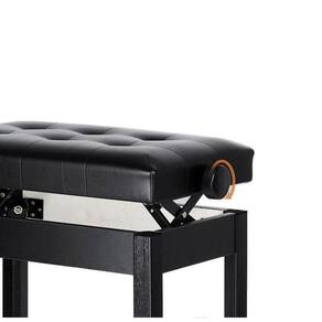 Banqueta para piano/teclado- Assento acolchoado em couro sintético que não é apenas confortável, mas também extremamente elegante. O design vintage, irá complementar seus móveis e oferecerá uma sensação de luxo. Além disso, o banco possui uma estrutura de madeira sólida e pernas para uma ótima estabilidade e desempenho.- Altura do banco de piano é 100% ajustável, de modo que cada membro da sua família pode usá-lo facilmente. Tudo o que você precisa fazer é girar os botões simples e ajustar a altura de 46 cm para 56 cm. - Dimensões Altura: 46 - 56 cm Assento: 55 - 34 cm - Capacidade de carga:150 kg- Capacidade de pessoas:1- Material: couro sintético e madeira maciça.- Assento: com 6 botões.- Peso:9 Kg- Cor: preto- Perfeito para escolas, igrejas, bares, orquestras, estúdios de gravação, bandas de música e concertos. Marca: Aj Som Acessórios Musicais
