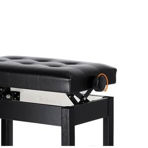 Banqueta para piano/teclado - Assento acolchoado em material sintético que não é apenas confortável, mas também extremamente elegante. O design vintage, irá complementar seus móveis e oferecerá uma sensação de luxo. Além disso, o banco possui uma estrutura de madeira sólida e pernas para uma ótima estabilidade e desempenho. - Altura do banco de piano é 100% ajustável, de modo que cada membro da sua família pode usá-lo facilmente. Tudo o que você precisa fazer é girar os botões simples e ajustar a altura de 46 cm para 56 cm. - Dimensões Altura: 46 - 56 cm Assento: 55 - 34 cm - Capacidade de carga:150 kg - Capacidade de pessoas:1 - Material: material sintético e madeira maciça. - Assento: com 6 botões. - Peso:9 Kg - Cor: preto - Perfeito para escolas, igrejas, bares, orquestras, estúdios de gravação, bandas de música e concertos. Marca: Aj Som Acessórios Musicais
