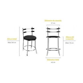 Banqueta com acabamento Cromado. Caso deseje a estrutura com Pintura Epoxi nas cores Branca, Preta ou Cinza, favor nos informar também após a compra.