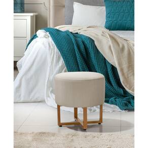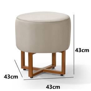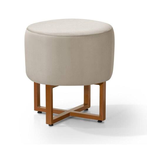 Banqueta Redonda Tecido Veludo Areia Com Pes de Ferro Estilo Industrial Cobre - Bege