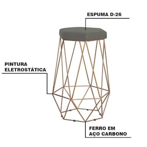 Banqueta Decorativa Rubel Base Gold Suede Cinza - Gran Belo É ideal para quem está à procura de um produto moderno para decorar o ambiente de forma despojada. Sua estrutura é totalmente em ferro com pintura eletrostática, o que torna o produto mais resistente. A Banqueta Rubel pode decorar sua sala, sua cozinha, área gourmet, varanda, e muito mais! Corre aproveitar.