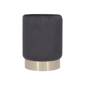 Puff redondo revestido em veludo preto e forrado internamente com espuma. Possui pé em latão dourado totalmente espelhado. Esta peça é muito versátil, pode ser utilizada como apoio ou assento extra quando você precisar.