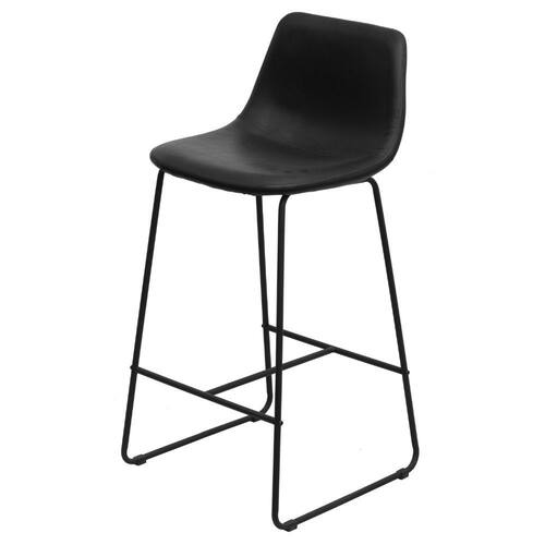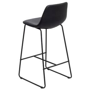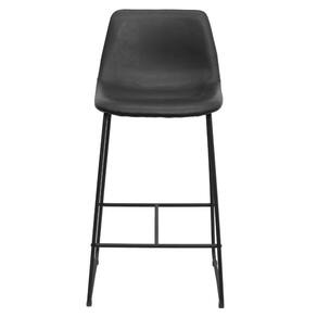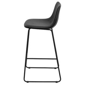 A base em aço pintado também na cor preta complementa o assento, criando um visual monocromático e minimalista que exala modernidade. A estrutura da base, com seu design esguio e robusto, assegura estabilidade e durabilidade, enquanto contribui para a leveza visual da banqueta.