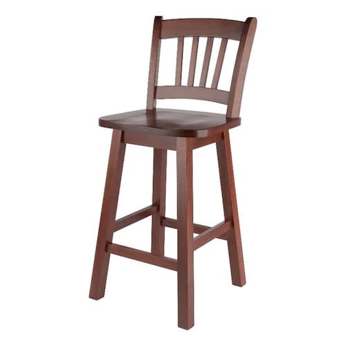 Winsome Banco giratório fino, 61 cm de altura, madeira maciça, acabamento de nogueira