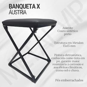 Banqueta X Áustria Baixa 45X35Cm Desmontável Na Cor Preto