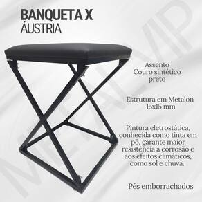 Banqueta x Áustria baixa 45x35Cm Desmontável na cor Preto Bem-vindo à Tudo de ferramentas É um prazer recebê-lo em nossa loja Temos o orgulho de servir clientes em todo o Brasil. Sinta-se à vontade para entrar em contato com nossa equipe para sanar duvidas. Agradecemos por escolher a Tudo de Ferramentas e esperamos que você tenha uma excelente experiência de compra conosco Banqueta baixa X Áustria em Ferro 45x35Cm Desmontável A Banqueta estilo industrial baixa X estofado na cor preto da Metal Vip é a escolha perfeita para quem busca um toque contemporâneo e funcional em sua decoração. Com uma altura máxima de 45 cm, ela se adapta facilmente a diferentes ambientes, seja na sala de estar, no home office na cozinha, em uma pescaria ou acampamento. Seu design industrial, aliado ao assento em material sintético preto, proporciona um visual sofisticado e ao mesmo tempo despojado. Esta banqueta é robusta e suporta até 120 kg, garantindo durabilidade e segurança. Com dimensões de 35 cm de largura e 35 cm de profundidade, ela é compacta e ideal para espaços menores, sem abrir mão do conforto. O estofamento acolchoado oferece uma experiência agradável ao sentar, tornando-a uma excelente opção para longos períodos de uso. A pintura eletrostática confere um acabamento resistente e de fácil manutenção, ideal para o dia a dia. Além disso, a banqueta possui um sistema de montagem simples com porcas borboletas, facilitando sua utilização imediata. Aposte no Estilo Industrial e transforme seu espaço com estilo e praticidade. Marca: Não Informado Ean: 7905755518264