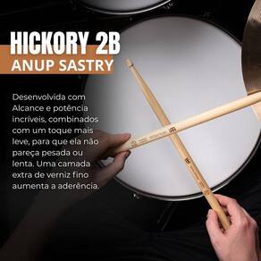 Baqueta meinl stick & brush signature anup sastry Anup sastry e a meinl desenvolveram uma baqueta signature que é grande, mas ágil. O modelo de anup tem como base a nossa heavy 2b, com comprimento aumentado, afilamento médio e peso leve. Essa combinação oferece grande alcance e potência, mantendo um toque leve e responsivo - sem parecer pesada ou lenta. Uma camada extra de verniz fino foi aplicada para melhorar a aderência. como uma baqueta maior, ela é muito bem equilibrada. Nem muito pesada, nem muito leve. Sempre quis uma baqueta um pouco mais longa e grossa que uma 2b padrão, mas que não fosse pesada ou cansativa. Ela une o melhor dos dois mundos: as dimensões de uma baqueta grande com o peso de algo mais leve e ágil.