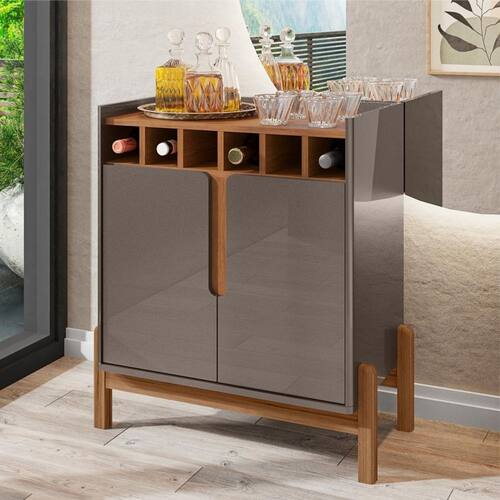 Pés em madeira maciça,Possui 2 portas e Adega para 6 garrafas,Acabamento Semi-Brilho