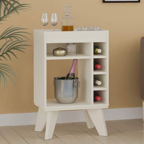 Leve para sua casa um produto de excelente qualidade, resistência e que vai agregar à decoração do ambiente. Com design moderno, versátil e sofisticado, o Bar Drink é ideal para completar a decoração da sua casa. Possui porta-garrafas e espelho. Com pintura UV texturizada, sua manutenção fica muito mais fácil. Além disso, o móvel possui três meses de garantia. A responsabilidade com meio ambiente também é uma das bandeiras da Artely Móveis. Acabamento da Prateleira: Espelho Acabamento dos Pés: Pintura Altura do Espelho: 28 cm Altura dos Pés: 22 cm Ambiente Principal: Sala de Jantar Bandeja: Bandeja Não Removível Complexidade da Montagem: Baixa: pode ser montado por uma pessoa sozinha Cor: Off White Cor do Produto: Off White Cor Interna: Off White Escala de Brilho: Fosco Escala de Brilho da Prateleira: Brilhante Espessura do Espelho: 3 mm Formato do Espelho: Retangular Informações Complementares: Espelho no fundo da bandeja fixa Itens Inclusos: 1 Bar, Kit Ferragem e Manual de Montagem Largura do Espelho: 42 cm Manual de Montagem e Instalação: https://cdn2.madeiramadeira.com.br/atributo/artely/531272-bar-drink.pdf Material da Prateleira: Vidro Material dos Pés: MDF Material Principal: MDF/MDP Necessita Montagem: Sim Origem do Produto: Nacional Pés Reguláveis: Não Peso: 12 kg Peso Máximo por Prateleira: 8 kg Porta Rolhas/Tampinhas: Não Porta Taças: Não Porta-garrafas: 04 Possui Adega: Sim Possui Espelho: Sim Possui Gavetas: Não Possui iluminação: Não Possui Pés: 04 Possui Portas: Não Possui Prateleiras: 01 Possui Rodízio: Não Possui Vidro: Não Quantidade de Espelho: 01 Quantidade de Garrafas da Adega: 04 Recomendações de Uso, Manutenção e Limpeza: Limpeza com pano levemente umedecido em água Sapatas Niveladoras: Sim Sistema de Montagem: Minifix, Parafusos e Cavilhas Suporta Até (kg): 12 kg Tipo de Fixação do Espelho: Molduras
