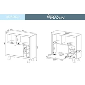 Bar de Sala Jantar AD5002 Adega p/ 6 Garrafas Rústico - Tecno Mobili