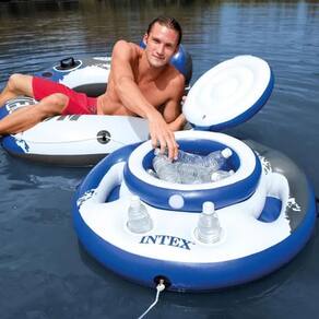 Bar Inflável Flutuante 24 Latas com Porta Copos Intex Na hora de aproveitar os dias quentes sem perder nenhum momento e ainda garantir diversão e conforto, você pode contar com o Bar Inflável Flutuante 24 Latas com Porta Copos Intex. É o acessório que vai levar mais alegria, aconchego e praticidade para dentro da água, afinal, é com ele que você irá armazenar, manter a temperatura e apoiar latas de bebidas e copos, sem o menor risco de causar acidentes. Características do Bar Inflável Flutuante 24 Latas com Porta Copos Intex Este produto é um bar inflável, que possui diversos benefícios para que você, sua família e seus amigos aproveitem os dias de calor com muita diversão, conforto e praticidade. Ele é confeccionado com plástico do tipo PVC, que é muito resistente e de longa duração, ou seja, não te oferecerá problemas com danos ou rasgos ao longo do tempo. Tem 89 cm de diâmetro, que é o tamanho ideal para você transportar com facilidade. A cor é azul. Cada embalagem possui apenas 1 bar flutuante.Bar Inflável Flutuante 24 Latas com Porta Copos IntexCom esse incrível bar inflável, você tem acesso a até 24 latas de forma simples e prática, além de mantê-las geladas. Quer saber mais detalhes? Continue a leitura dos dados abaixo:Características do Bar Inflável Flutuante 24 Latas com Porta Copos IntexO Bar Inflável Flutuante 24 Latas com Porta Copos Intex é bastante amplo, com 89 cm de diâmetro. É feito de plástico do tipo PVC, um material bastante resistente aos danos causados pela umidade e contato direto com a água, como o mofo. Tem duas pegadas para as mãos que facilitam o transporte e possui tampa.Comporta até 24 latas e tem quatro apoios externos para copos, trazendo praticidade.Benefícios do Bar Inflável Flutuante 24 Latas com Porta Copos Intex- Mantém as latas geladas dentro da piscina;- Praticidade em festas em reuniões;- O Bar Inflável Flutuante 24 Latas com Porta Copos Intex comporta até 24 latas de uma vez;- Possui porta copos;Informações extrasNão deixe crianças sozinhas em piscinas, para evitar acidentes, mesmo com boias.A garantia oferecida pela fábrica ao bar inflável é de três meses.Gostou desse produto? Então, corra para garantir agora mesmo o seu Bar Inflável Flutuante 24 Latas com Porta Copos Intex!