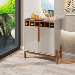 O Bar Lizz com Adegas, é perfeito para sua sala de estar ou jantar! Foi desenvolvido pensando na praticidade do seu dia a dia aliado à beleza de seu ambiente, possui 6 compartimentos para armazenar garrafas deitadas, 2 portas com dobradiças com sistema Soft close, Pés de madeira maciça. Tudo isso para lhe proporcionar melhor experiência na recepção de suas visitas e organizar suas bebidas.
