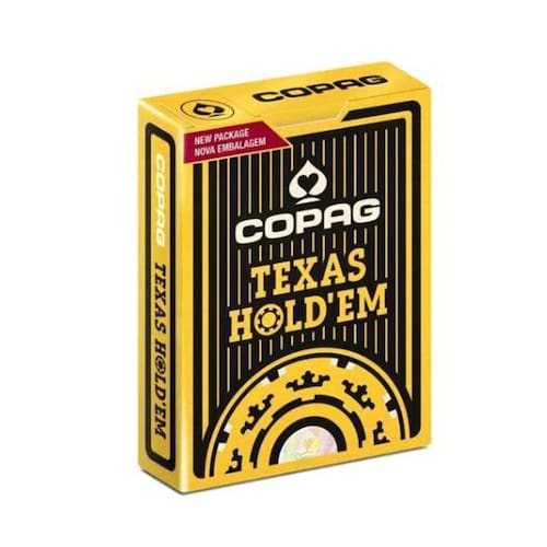 As cartas do Baralho Texas Hold’em Copag são do tamanho poker size 63x88mm com naipe grande, não transparentes e impermeáveis. Cada deck de baralho possui cinquenta e cinco 55 cartas, sendo cinquenta e quatro 54 cartas para jogar e uma 1 carta garantia.