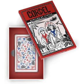 Prepare-se para uma experiência única que celebra a rica brasilidade através das cartas.O Cordel é uma forma popular de literatura, composta por pequenos folhetos impressos, repletos de histórias narradas em rimas simples. Trazido pelos portugueses, mas ganhou força no Norte e Nordeste, esses folhetos são pendurados em cordas para venda, daí o nome "Cordel “. As ilustrações únicas do baralho são feitas por Ary Falcão conhecido por suas criações em xilogravuras modernas. Escolhemos homenagear em cada naipe um cordel diferente sendo eles:Espadas (Peixeira/faca): A Chegada de Lampião no Céu - Guaipuan VieiraOuros (Balão): História de Juvenal e o Dragão - Leandro Gomes de BarrosCopas (Coração Sagrado): Testamento da Cigana Esmeralda - Leandro Gomes de BarrosPaus (Cacto): Romance do Pavão Misterioso - João Melquíades FerreiraDivirta-se e mergulhe neste universo encantador do Baralho Cordel!Este baralho é uma obra de arte que entrelaça tradição e contemporaneidade, capturando a magia das xilogravuras modernas de Ary Falcão.Viva a riqueza da brasilidade com o Baralho Cordel - uma experiência autêntica que homenageia a essência do nosso país em cada carta Informações Adicionais:Embalagem: UnitárioQuantidade de Cartas: 55 CartasCom este baralho você pode jogar: blackjack, bridge, buraco, cacheta, canastra, escopa, mau mau, paciência, pif-paf, pife, tranca, trunfo e o que mais você quiser!