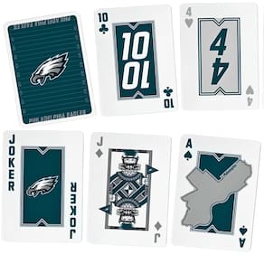 Descrição do produto : Baralho NFL - Philadelphia Eagles Transforme suas noites de jogos com o Baralho NFL - Philadelphia Eagles! Este baralho exclusivo destaca o espírito dos Eagles com designs inspirados nos logos e emblemas icônicos da equipe. Cada carta é adornada com detalhes únicos, incluindo imagens de capacetes e outros símbolos do time. Produzido com papel 300g/m² de alta qualidade e acabamento com verniz especial, garante durabilidade e uma sensação premium ao toque. Com 55 cartas no formato poker size, é a escolha perfeita para jogos com amigos ou para colecionadores apaixonados. A embalagem temática é um ótimo complemento para qualquer fã dos Eagles. Garanta o seu Baralho NFL - Philadelphia Eagles hoje e explore nossa coleção completa de baralhos temáticos! : Detalhes técnicos : Marca: Copag : Referência: 34585 : Idade recomendada: 18 : Material: Cartão : Ean: 7896192345844 : Peso (kg): 0,10 : Dimensões aproximadas da embalagem: 9 x 6 x 2 cm : Contém: 55 cartas no tamanho poker : Tamanho da carta : Poker Size