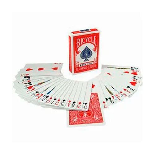 Baralho Invisível Bicycle (Vermelho e Azul) Uma carta é pensada por um espectador livremente e sem forces, no final da rotina ela é a única que aparece virada no maço de cartas do mágico. Um número muito impressionante que faz parte da rotina de qualquer bom mágico profissional do Close-up. Agora em baralho Bicycle. Especificações Técnicas: - Cada baralho acompanha 52 cartas - Fabricado pela USPCC (United State Playing Card Compagny) - Fabricado pelo Roughing fluid - Acabamento Air-Cushion Finish Itens Inclusos: - 01 Baralho preparado - 01 Link com vídeo explicativo