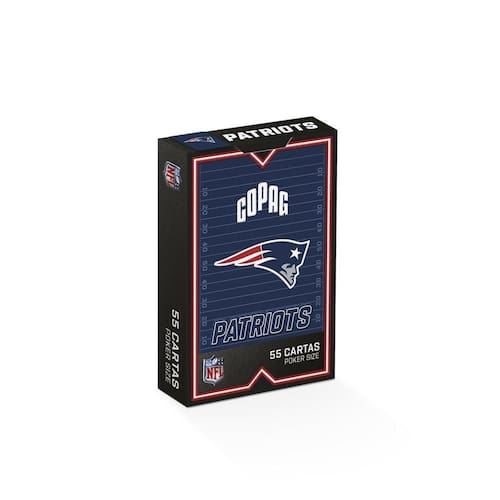 O Baralho NFL New England Patriots da Copag é o item perfeito para os fãs apaixonados do time. Com um design exclusivo e marcante, este baralho premium é uma verdadeira celebração do New England Patriots. As 55 cartas em tamanho poker apresentam imagens de reis, rainhas e valetes inspiradas em capacetes e uniformes, além de incorporar os logos e símbolos do time.
