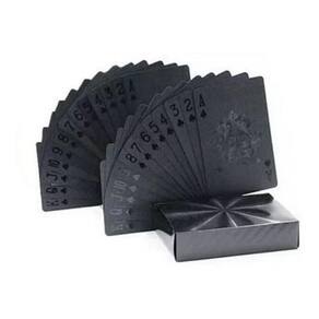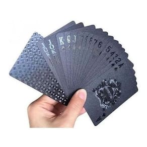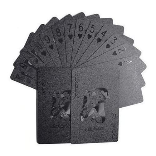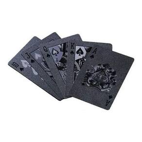 - Cor: Preto fosco - Resistente a risco - À prova Dágua - Carta flexível - contem 52 cartas e 2 coringas - Material: Lâminas plásticas com folha de Preta