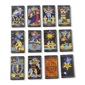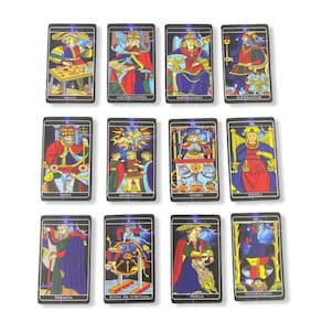 Baralho Tarot Universal Azul 24 Cartas Oráculo - Acompanha manual Baralho Tarot Universal Ao jogar as cartas Baralho Tarot Universal de forma aleatória, adquirimos respostas para diferentes nas questões importantes em todas as áreas de nossas vidas. Especificações técnicas: Dimensões da caixa 85 mm de largura x 20 mm de altura x 165 mm de comprimento Design impressionante, bem tradicionais em tons azuis. boa qualidade de impressão, resolução e ilustrações bem definidas. Ótimo deslize, portanto, são mais difíceis de amassar