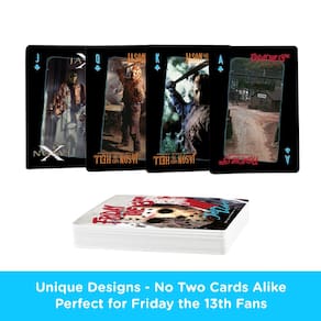 - SEXTA-FEIRA, 13º BARALHO DE CARTAS: Jogue seus jogos de cartas favoritos com amigos e familiares enquanto ressuscita Jason Vorhees com este baralho oficial de cartas de sexta-feira 13