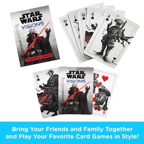 — JOGUE SEU JOGO FAVORITO COM TODA A FAMÍLIA: Teste sua sorte e inteligência com seus colegas fãs em sua próxima festa ou noite de jogo com este baralho incrivelmente divertido de cartas de baralho Star Wars Visions que toda a família pode desfrutar