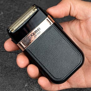 Agora você pode ficar sempre com a barba perfeita com o barbeador portátil lâmina dupla kemei.
