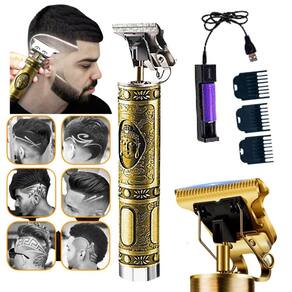 Barbeador Buda T9 Vintage Recarregável Maquininha Acabamento Cabelo Desenho Faixa Maquina Barbeador Elétrico para Acabamento Desenhos Detalhes Pezinho de Cabelo Pelos USB Buda - SLU - Vintage Barb Hair